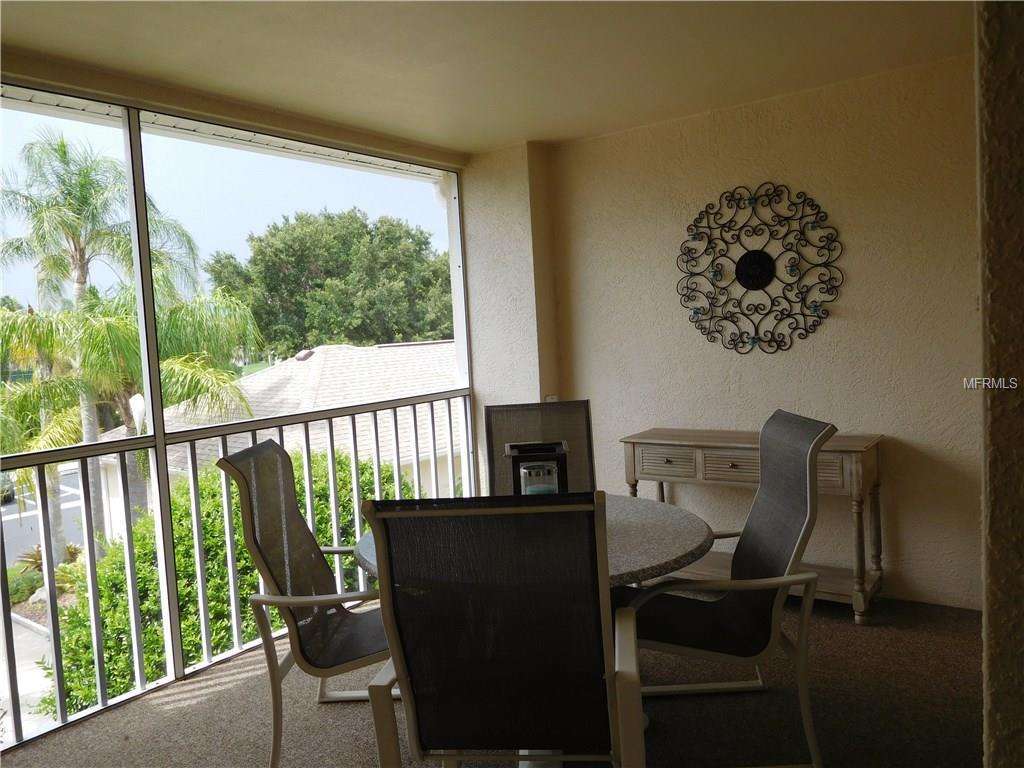 One of the prettiest views in Stoneybrook overlooking the 3rd hole on the golf course. This is special!! This second floor “Barrington” model veranda offers over 1400 sq. ft. of open living space, two bedrooms, two full baths, plus den/office, and is newly furnished and decorated, flat screen TVs, internet access, there is new engineered wood flooring in living and dining area and den. There is a screened entry and rear lanai, a one car detached garage and is conveniently located just a short distance from the heated community pool and tennis courts. The clubhouse is something to be proud of and features casual and formal dining, a grill room, piano lounge and meeting rooms, there is a well equipped fitness center, library, a large heated pool and spa. The community is conveniently located next to the Legacy Bike and Walking Trail and is minutes away from the famed sugary sand beaches of Siesta Key, shops and fine restaurants. The golf membership can be transfered for $250 for the duration of your stay. RENTED NOV THROUGH APRIL, 2020.