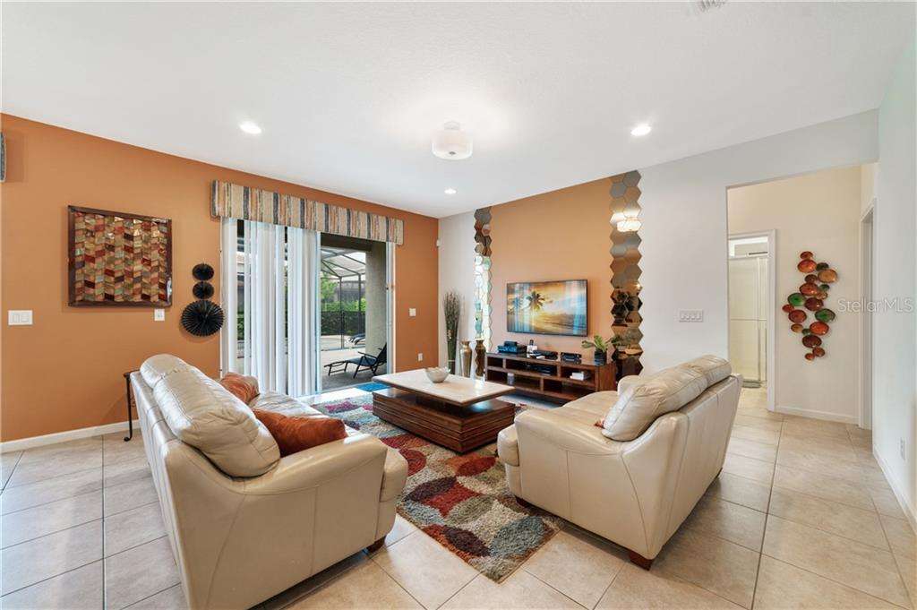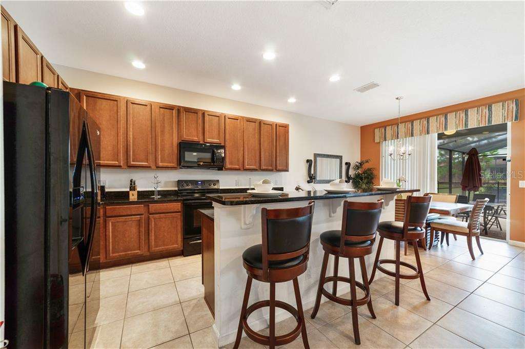 Beautiful fully furnished resort vacation pool home for immediate purchase. 6 large bedrooms and 5 baths. Turnkey ready with the great floor plan Coconut Palm by Park Square Homes. Great loft upstairs with game/media room & theme rooms. Granite kitchen/bathroom countertops, all kitchen appliances, laundry room, screened covered heated pool, covered lanai, and southwest facing pool. Professionally decorated furniture package including leather furniture. Gated entrances. The HOA fully maintains the lawns, common areas and kid-friendly areas. The clubhouse features a resort-style pool & lounge complex and a full exercise room/gym. Large pool with slides, tennis courts and pool cabanas. 15 minutes from Disney. Perfect for income generating short-term rental vacationers seeking what you will have – a secure, family-friendly resort experience. It can be your primary residence or your indulgent vacation home.