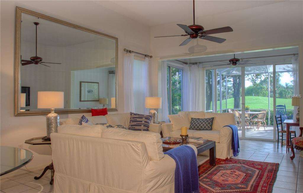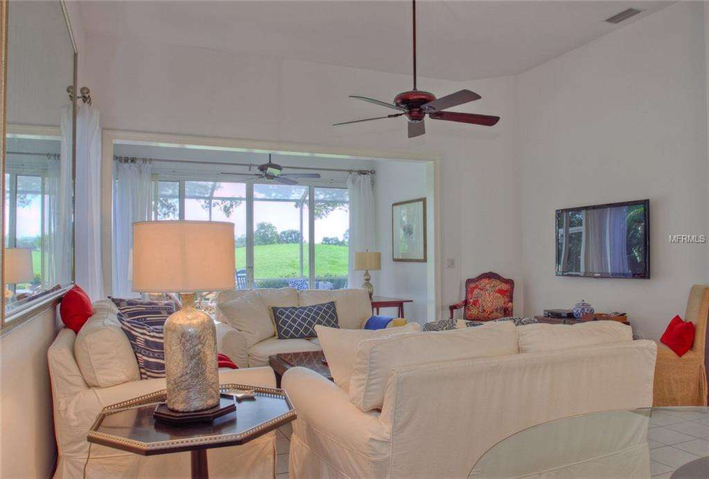 Beautiful decorating in this large villa with expansive views over the University Park golf course. All tile floors and large screened lanai overlooking the greens and sand trap. High end decorating in all the rooms, all tastefully coordinated. The villa has a king sized bed in the master bedroom, in the second bedroom there are two twin sized beds, then in the office/den there is a couch with a queen sized fold out bed. Off the kitchen there is a barbeque patio for ease of entertaining. The detached garage features installed cabinets for extra storage. Great location for your vacation on the exquisite golf course of University Park. UNIVERSITY PARK/ SEASONAL VILLA /SARASOTA/ BRADENTON FLORIDA